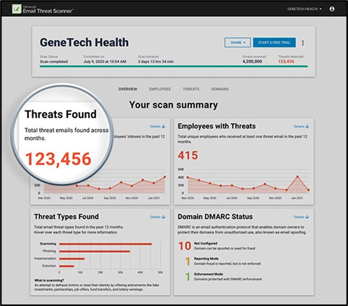 The solution blocks 13 types of email threats, including spam, malware, phishing, and business email compromise.