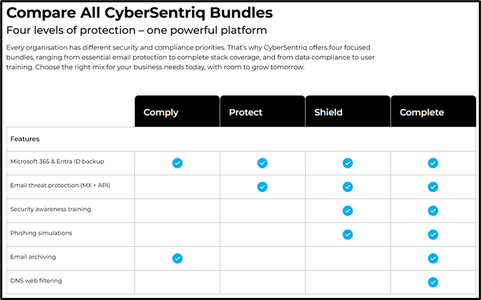 CyberSentriq represents a new MSP-first paradigm in email and data security, born from the merger of TitanHQ and Redstor in June 2025. Built specifically for MSPs (who make up 70-80% of their customer base), CyberSentriq offers a two-layer email defense approach: their flagship SEG product blocks threats at the MX gateway before they reach M365. At the same time, they offer API-based protection inside Microsoft 365. Add security awareness training, and you have complete defense-in-depth from a single vendor. With deployment in under 30 minutes, white-label capabilities, and tiered pricing that grows MSP margins, it's purpose-built for the channel. The platform uniquely includes M365 and Entra ID Backup and recovery capabilities and operates on an MSP-first model, featuring a single contract, support path, roadmap, and dedicated Account Manager.