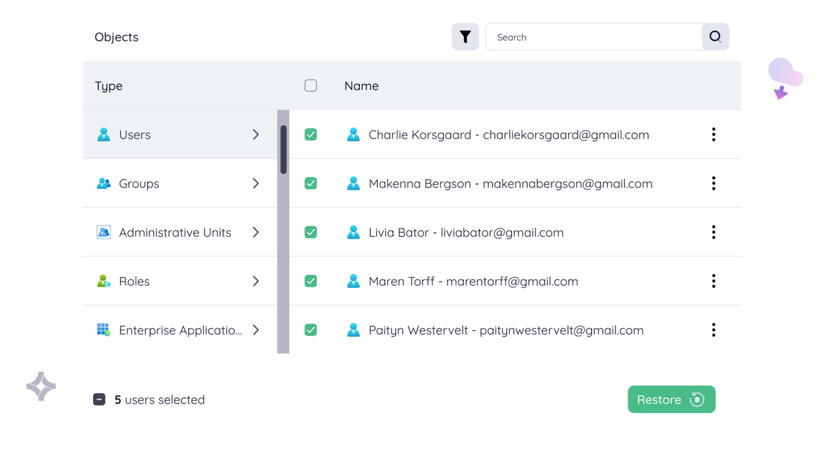 Admins can now recover Exchange, OneDrive, Gmail, or Google Drive data into a different account. Perfect for moving an ex-employee’s files to their manager without any fuss.