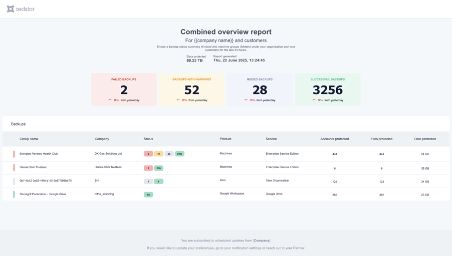 Partners & customers can now create, configure & schedule email reports from the RedApp for M365 Backup. We are also introducing expanded error messaging, which provides more detailed information to the customer and keeps everyone in the loop automatically.